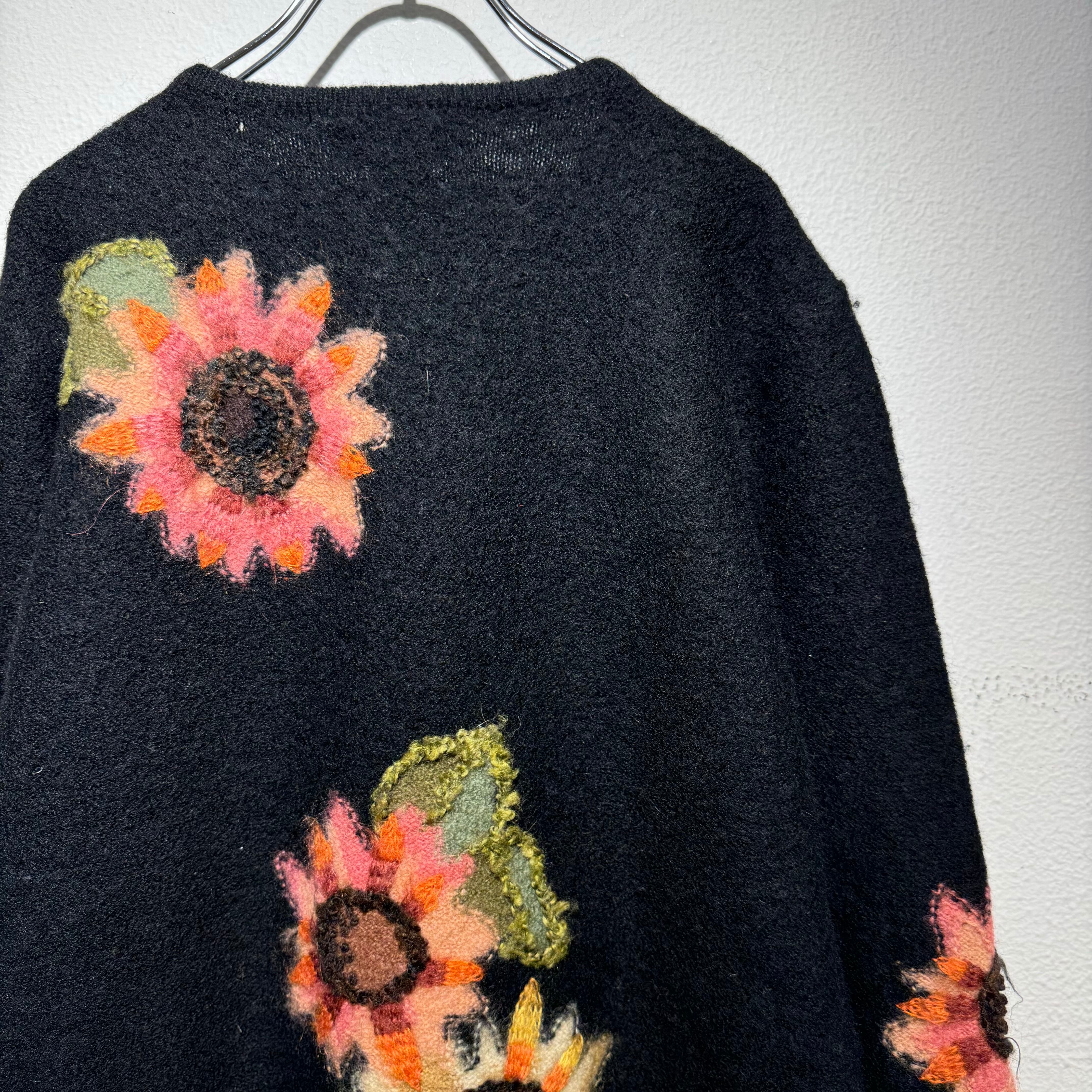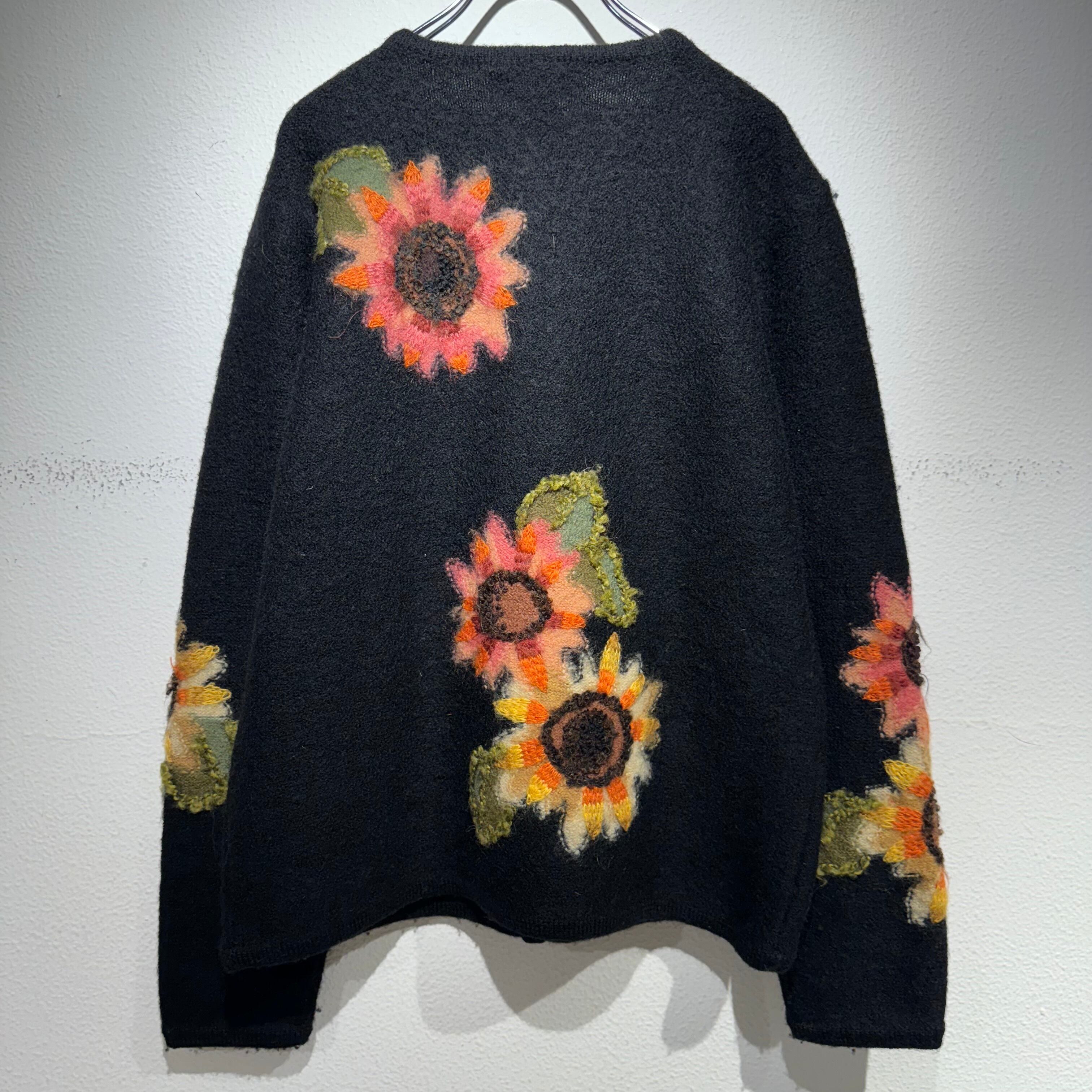 ひまわりの刺繍が可愛らしいニットカーディガン。