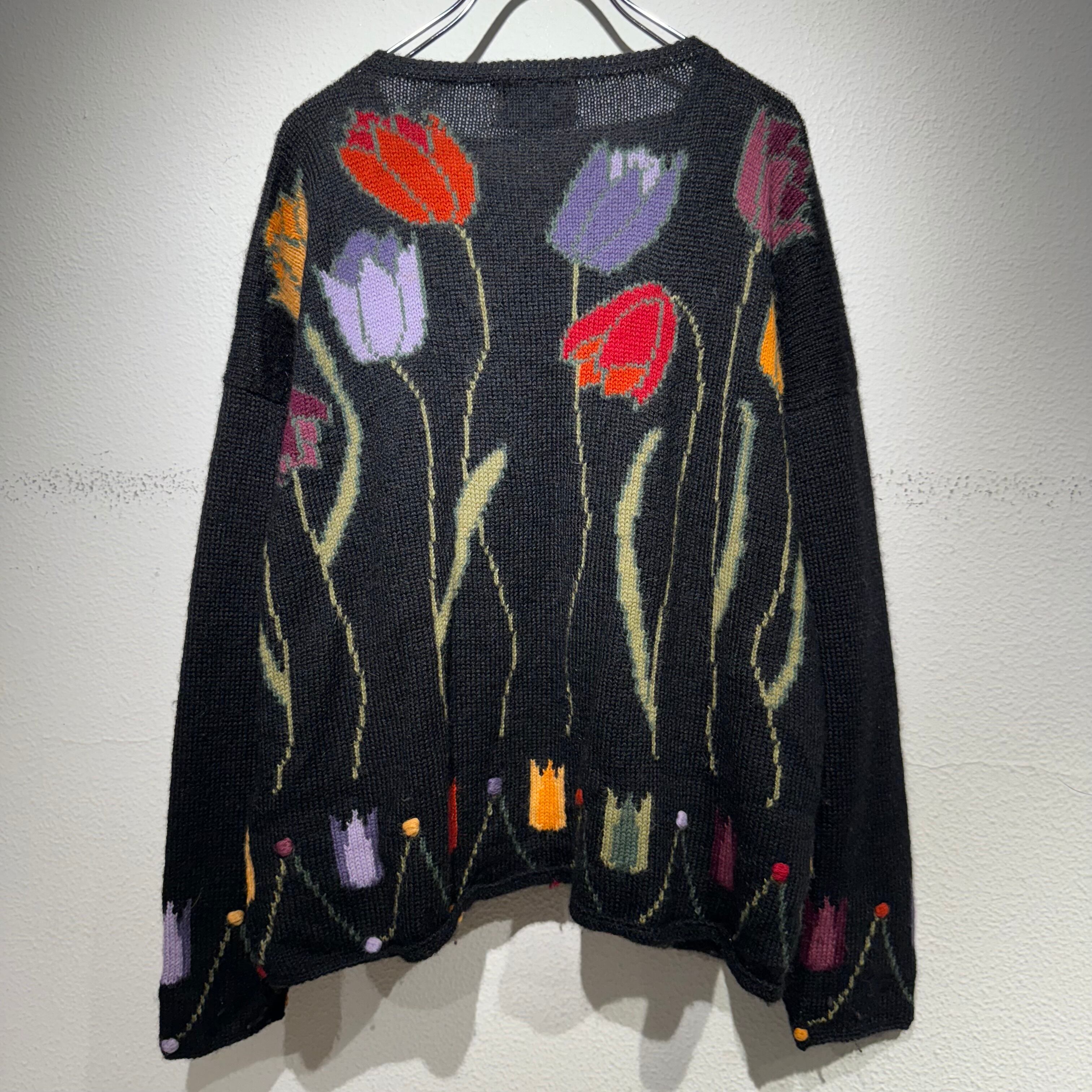 全面に描かれたチューリップが可愛らしいカーディガン。