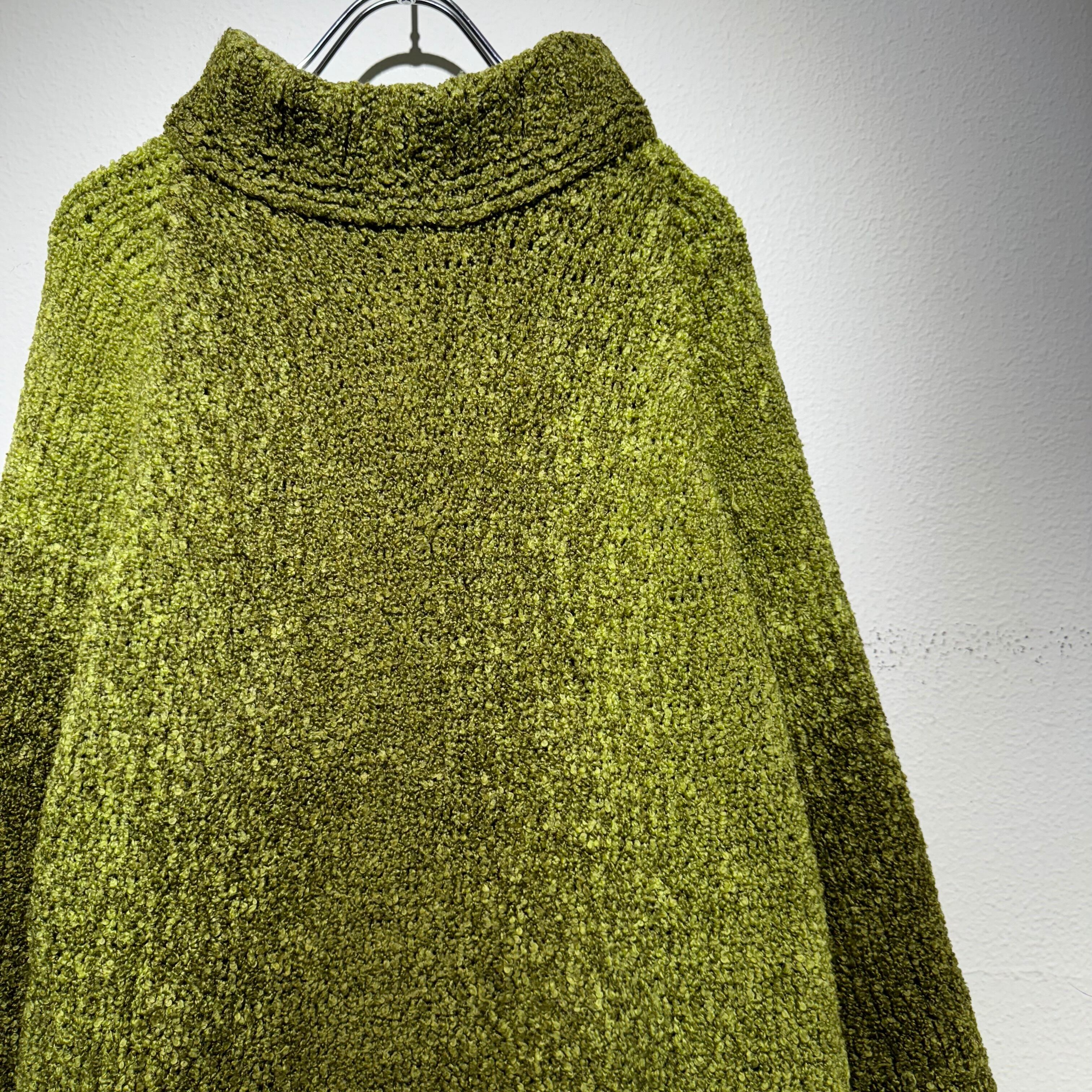グリーンのグラデーションが綺麗なハイネックニット。