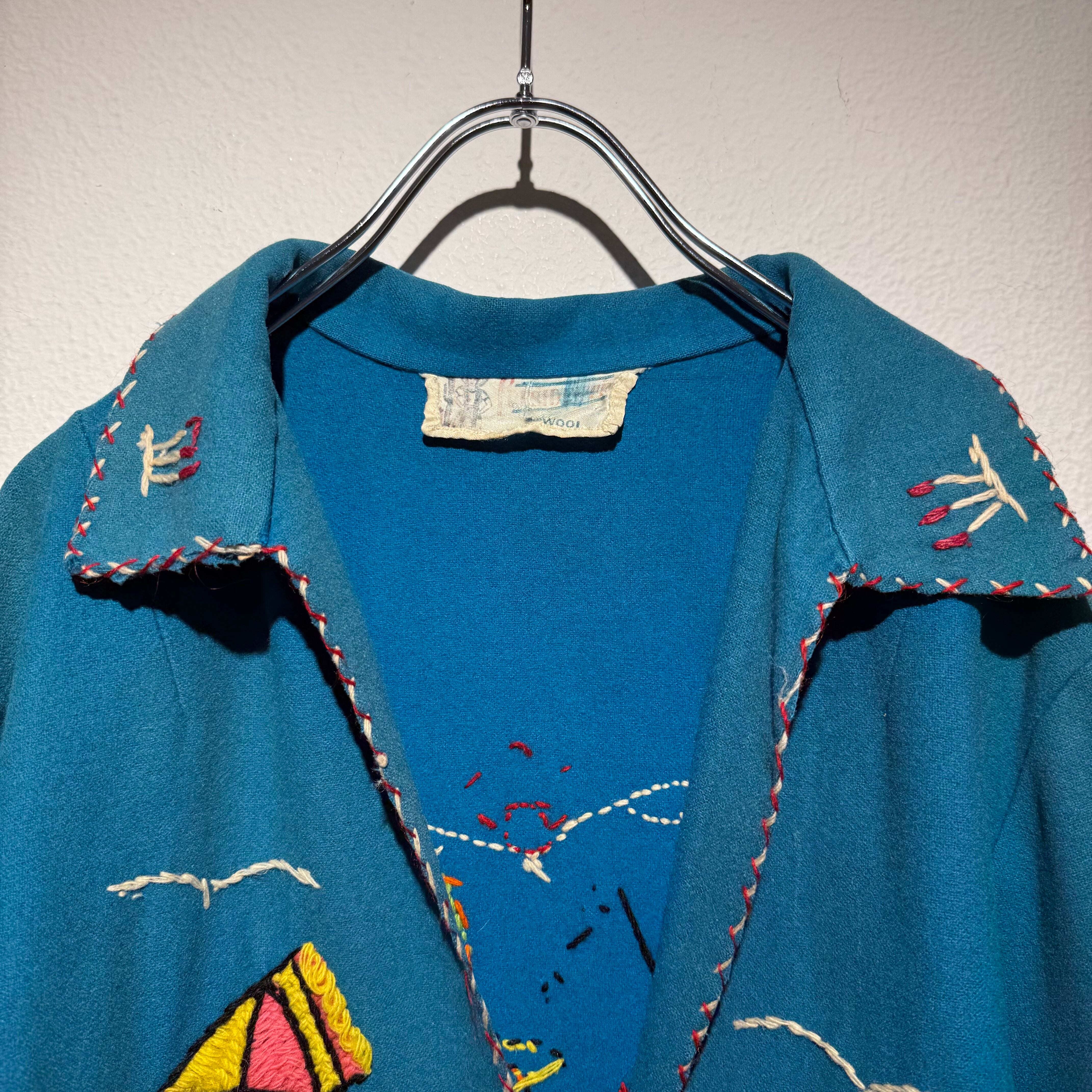 質感の良いウール地にハンド刺繍が施されたビンテージらしい1着。