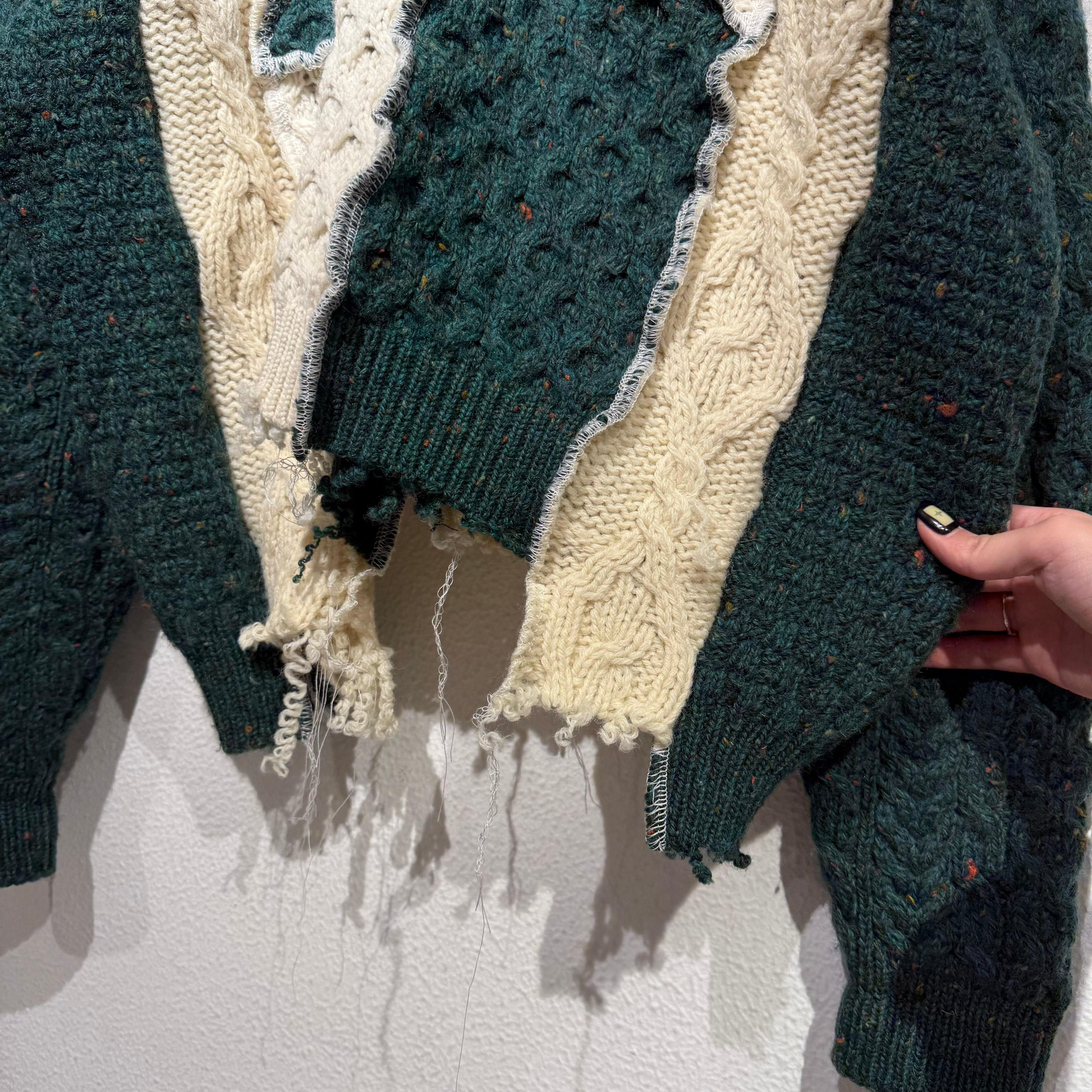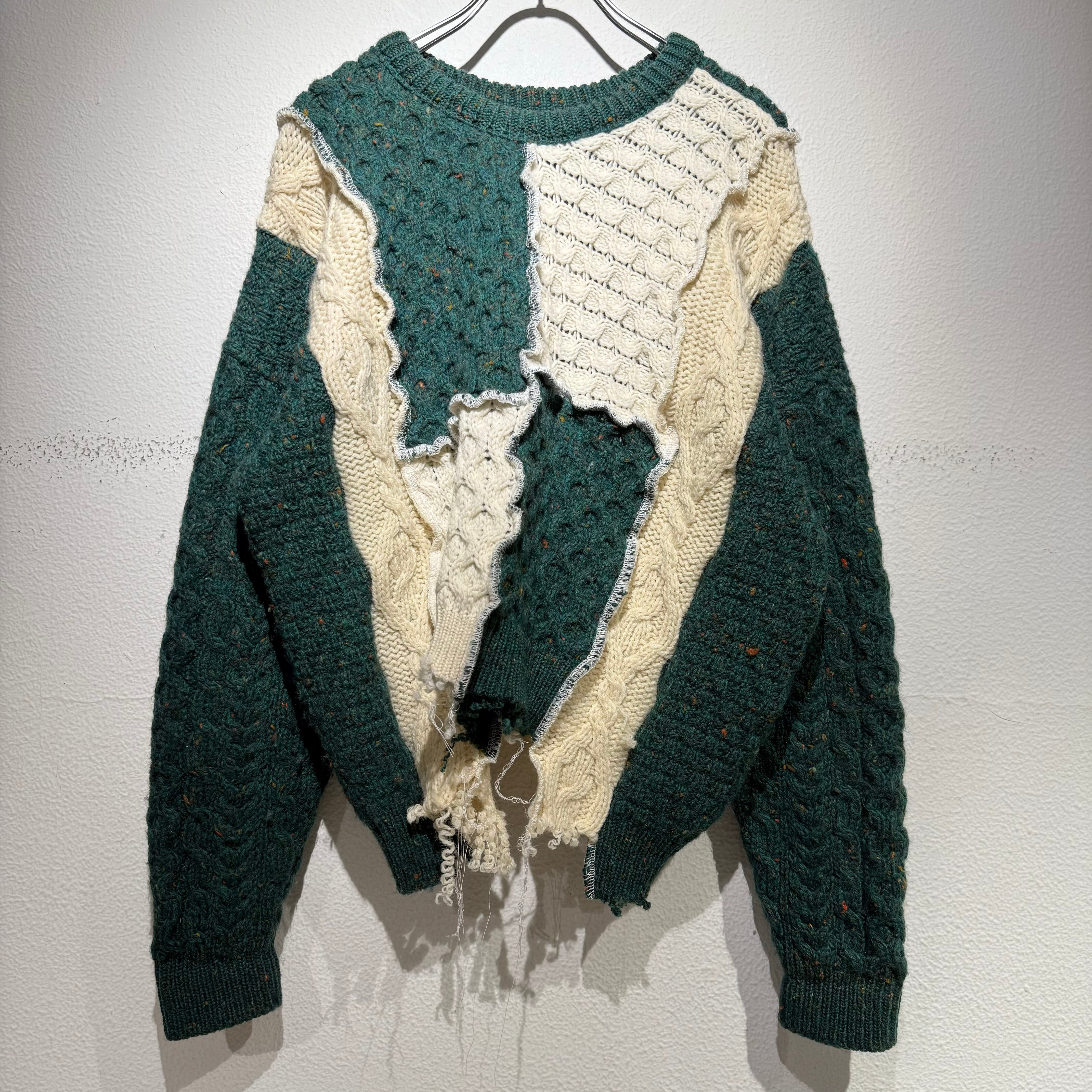 usedのアランニットをいくつも使用し、パッチワークニットに◎