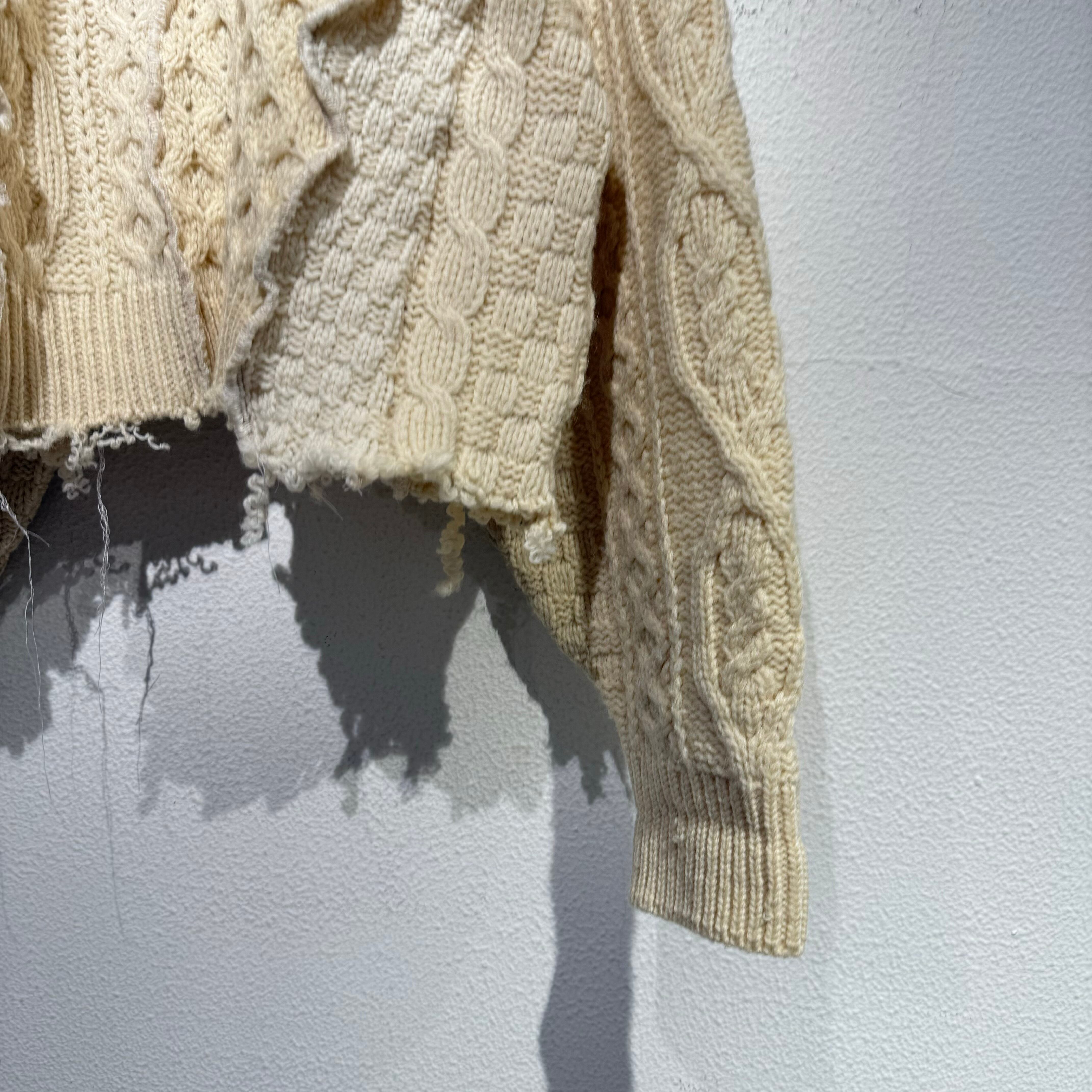usedのアランニットをいくつも使用し、パッチワークニットに◎