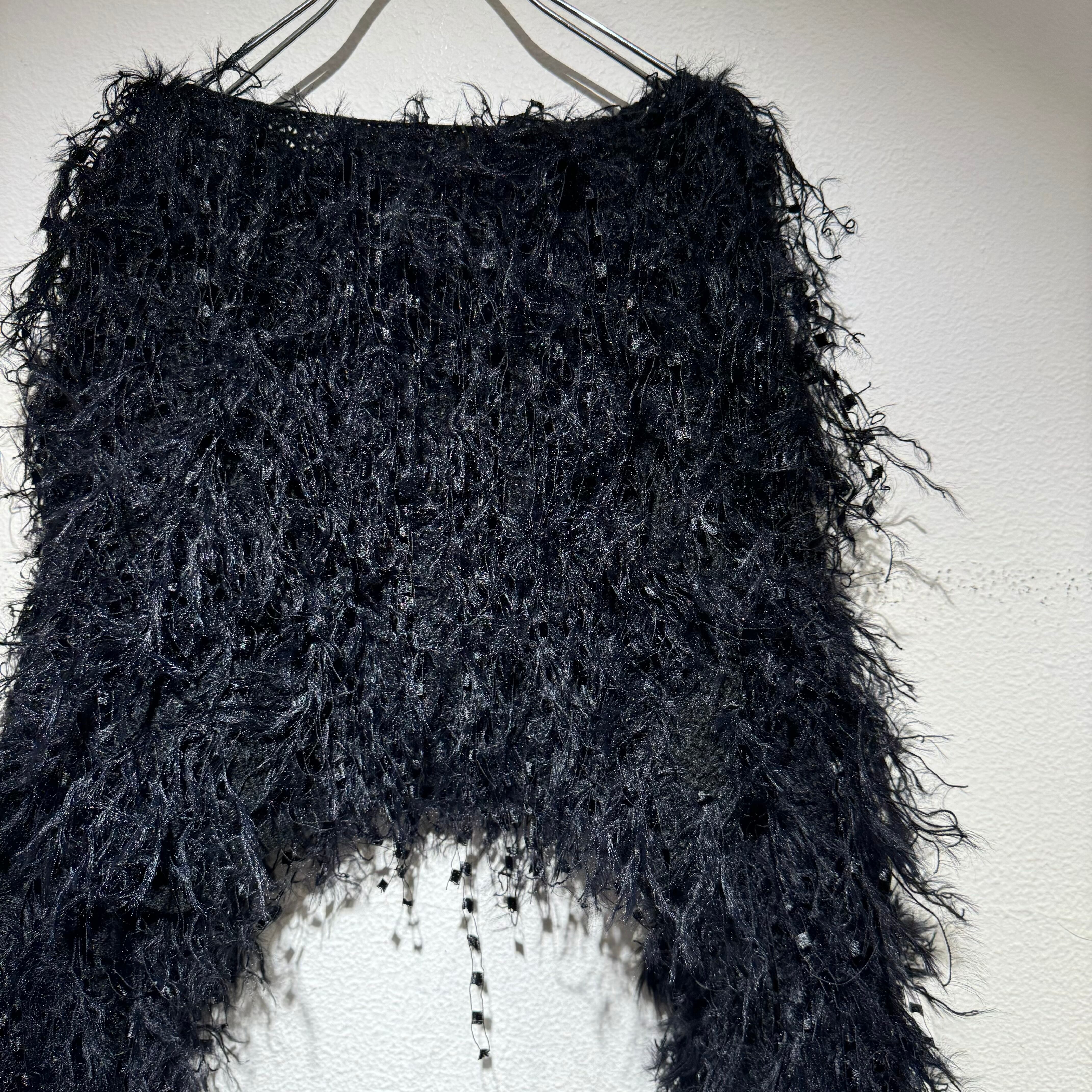 全面のフリンジが可愛らしいニットトップス。